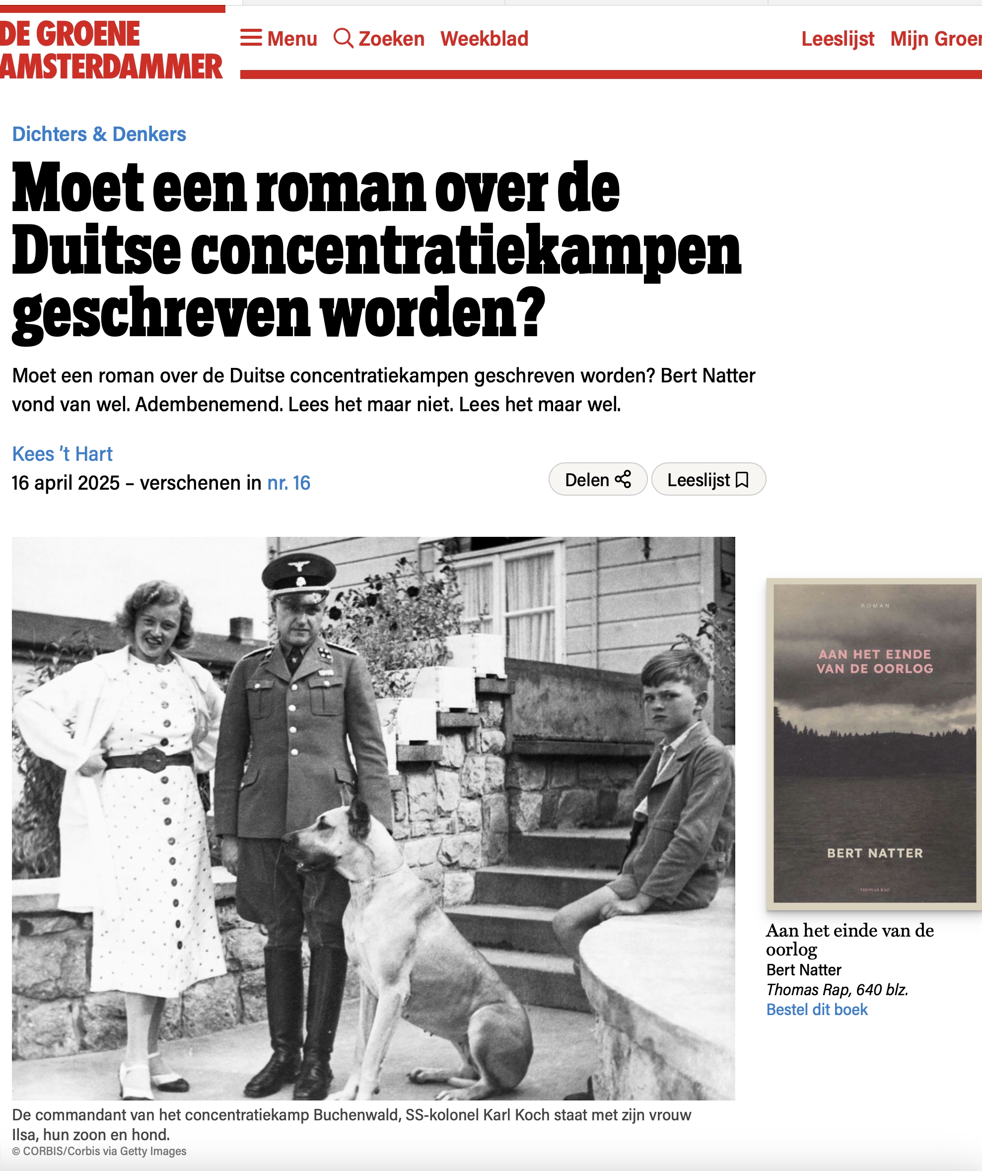 In De Groene Amsterdammer schreef Kees ’t Hart een recensie van Aan het einde van de oorlog.