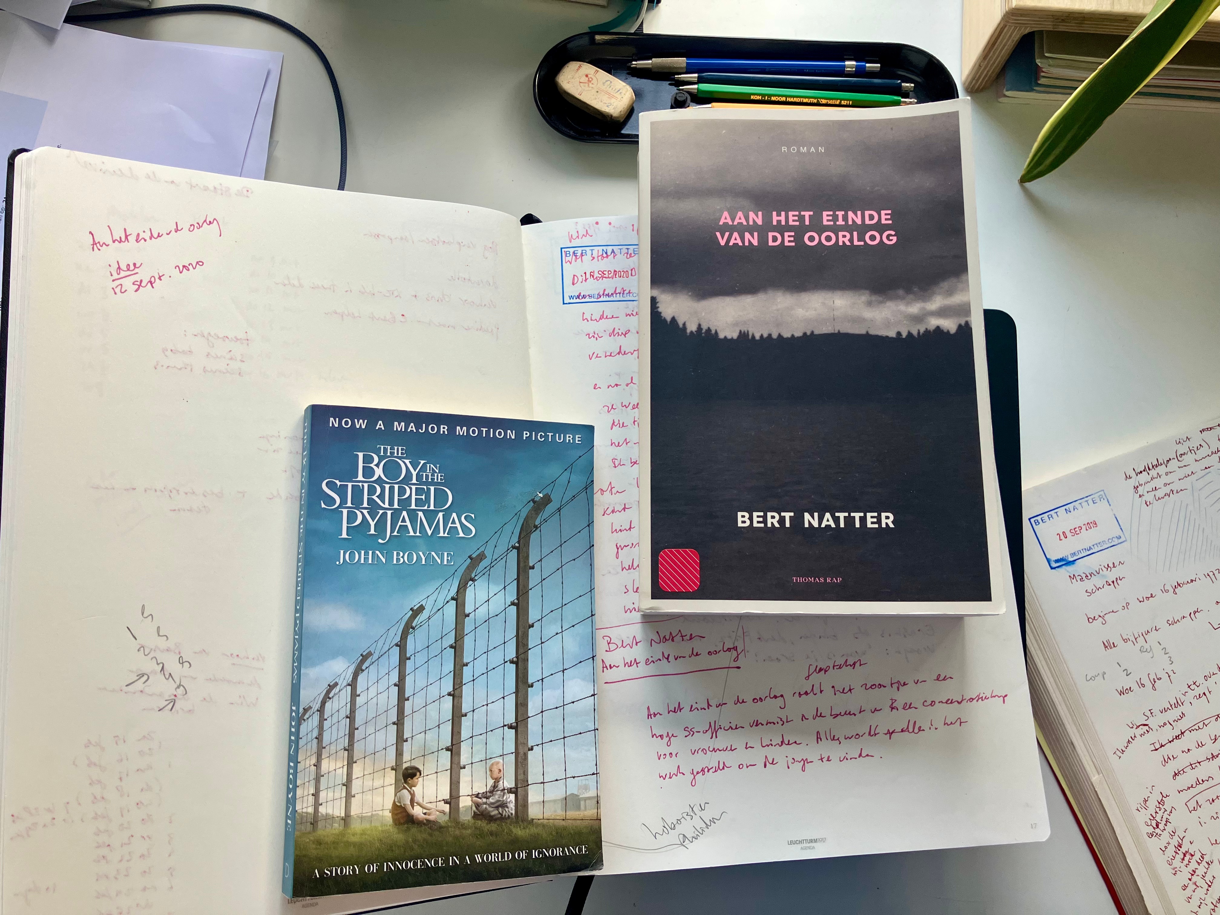 Op allerlei plekken wordt mijn roman Aan het einde van de oorlog in verband gebracht met The Boy in the Striped Pyjamas van John Boyne. Ik snap dat mensen die vergelijking maken, want dat deed ik zelf op een bepaald moment ook. Ik zal hieronder uitleggen hoe het zit. Het is een lang verhaal en er staan nogal wat spoilers in.