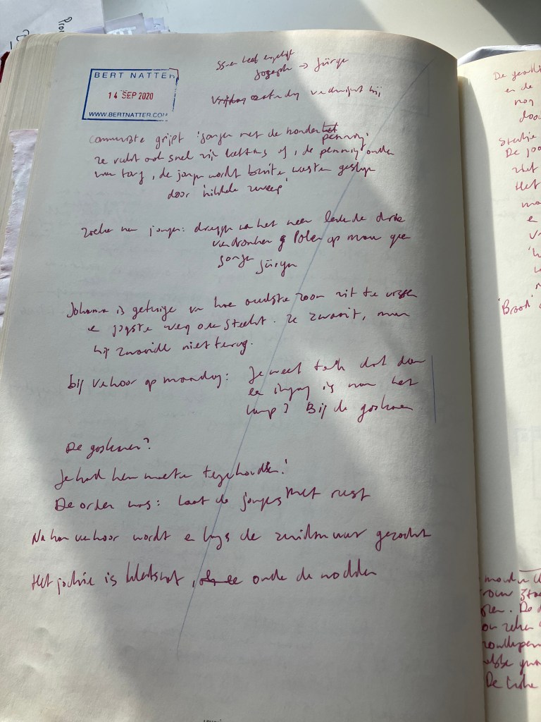 Op zaterdag 12 september 2020 schreef ik dus het plannetje op voor een ‘novelle’ die Het zoontje van de beul moest heten. De titel zou ik een paar dagen later veranderen. Je ziet wel dat ik al bezig was met hoe ik dit verhaal kon vertellen (‘derde perspectief, vierde perspectief,’ etc.).