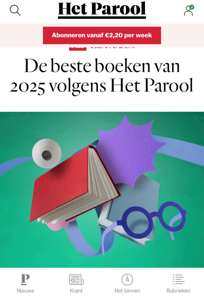 Wat een fijn nieuws, volgens Het Parool is mijn roman Aan het einde van de oorlog de beste fictietitel van het afgelopen jaar! Lees die krant!