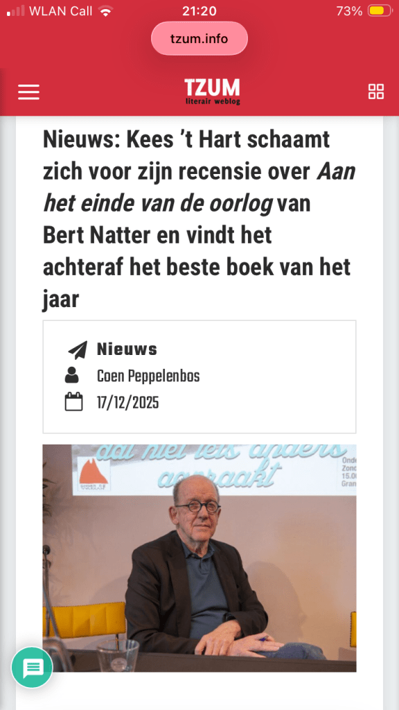 Blijkbaar is het zo zeldzaam in de letteren dat een criticus zijn mening herziet, dat Tzum er nieuws in ziet. Mijn literaire jaar kan niet meer stuk.