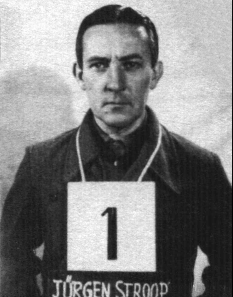 Geen wonder dat zich in het ghetto een ondergrondse beweging vormde, die zich met hulp van buiten mondjesmaat wist te bewapenen. Het kwam begin 1943 tot een heuse opstand en het was Himmler zelf die een dag voor de verjaardag van de Führer op 19 april 1943 de opdracht gaf voor een Große Aktion die voor eens en voor altijd een einde moest maken aan het ghetto van Warschau. Daartoe werd dus Jürgen Stroop (geboren als Josef, maar hij veranderde om ‘levensbeschouwelijke redenen’ zijn naam in Jürgen) naar de Poolse hoofdstad gestuurd, die daar een klein legertje samenstelt, bestaande uit Waffen-SS-ers, Wehrmachtsoldaten en Poolse politie-agenten.