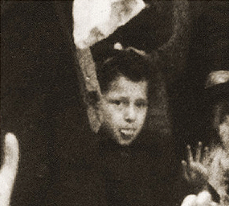 Het jongetje staat stil, ter zijde van de rest van de groep, van wie sommigen naar voren lijken te lopen. Hij ziet er het angstigst uit van allemaal, misschien is hij zojuist terecht gewezen, omdat hij zich losmaakte van de groep, of iets zag liggen en dat wilde oppakken — hij kan niet ouder dan een jaar of negen zijn en je kunt je voorstellen dat hij zelfs onder deze omstandigheden wat speels was.