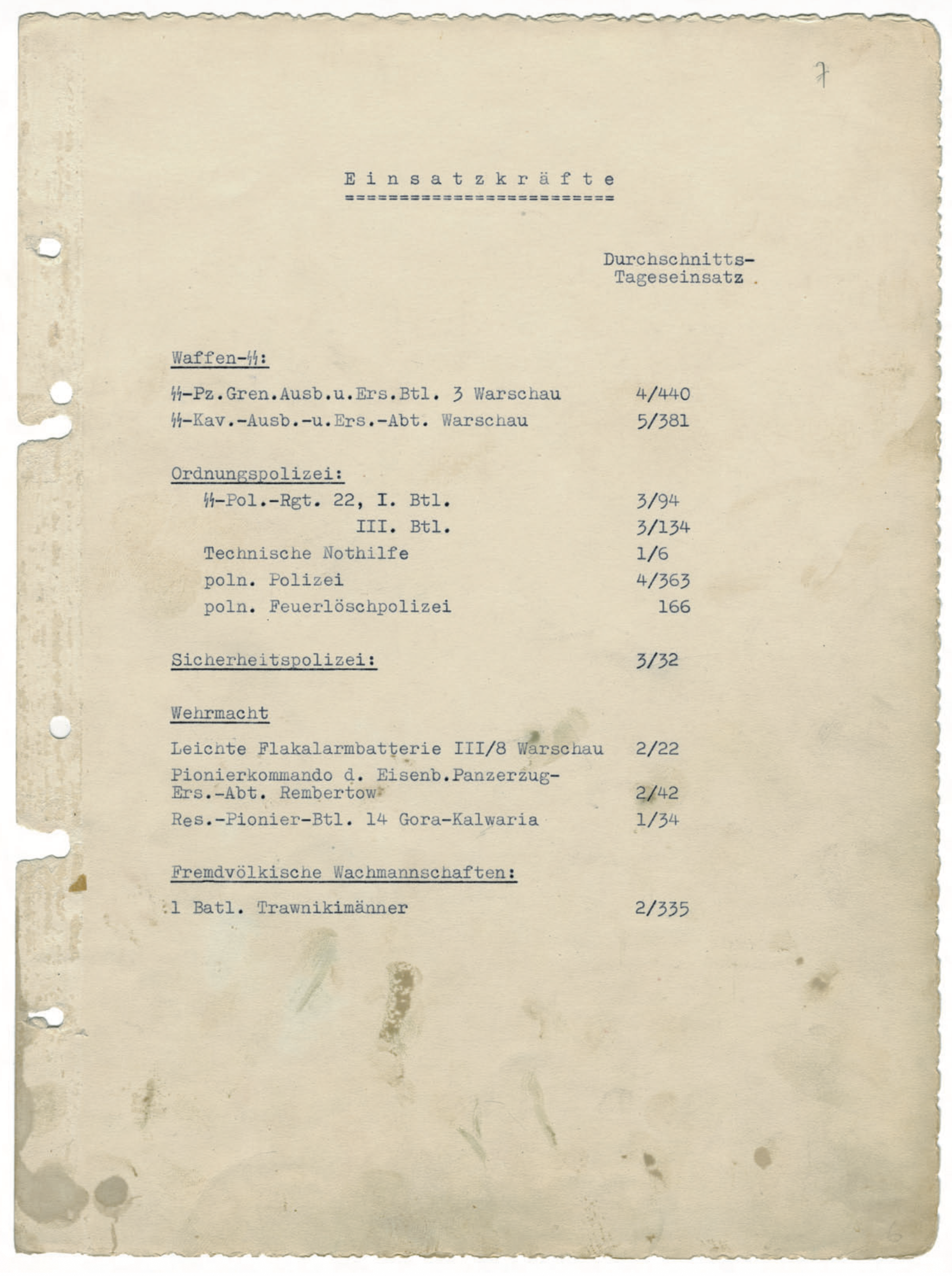 [Toch ook interessant, deze lijst met ingezette manschappen tijdens de ‘actie’, want in Duitsland geloven nog steeds veel mensen dat de SS wel betrokken was bij oorlogsmisdaden en de Wehrmacht niet. Dus wel, ze hielpen bij de moordpartij in het ghetto van Warschau.]