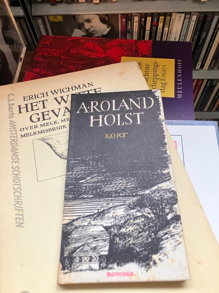 Bij het uitmesten van de boekenkasten stuitte ik de afgelopen maanden op allerlei vergeten boeken, zoals Kort, een bloemlezing met aforismen van A. Roland Holst (voorwoordje van Carmiggelt) waarin zowel holle frasen als diepe waarheden te vinden zijn. Het meest werd ik getroffen door het eerste citaat (zie afbeelding hieronder). Het zal voor een gedicht gelden en het geldt zeker voor een roman. Als je de toon hebt, vloeit alles ‘als vanzelf’ tot het slot.