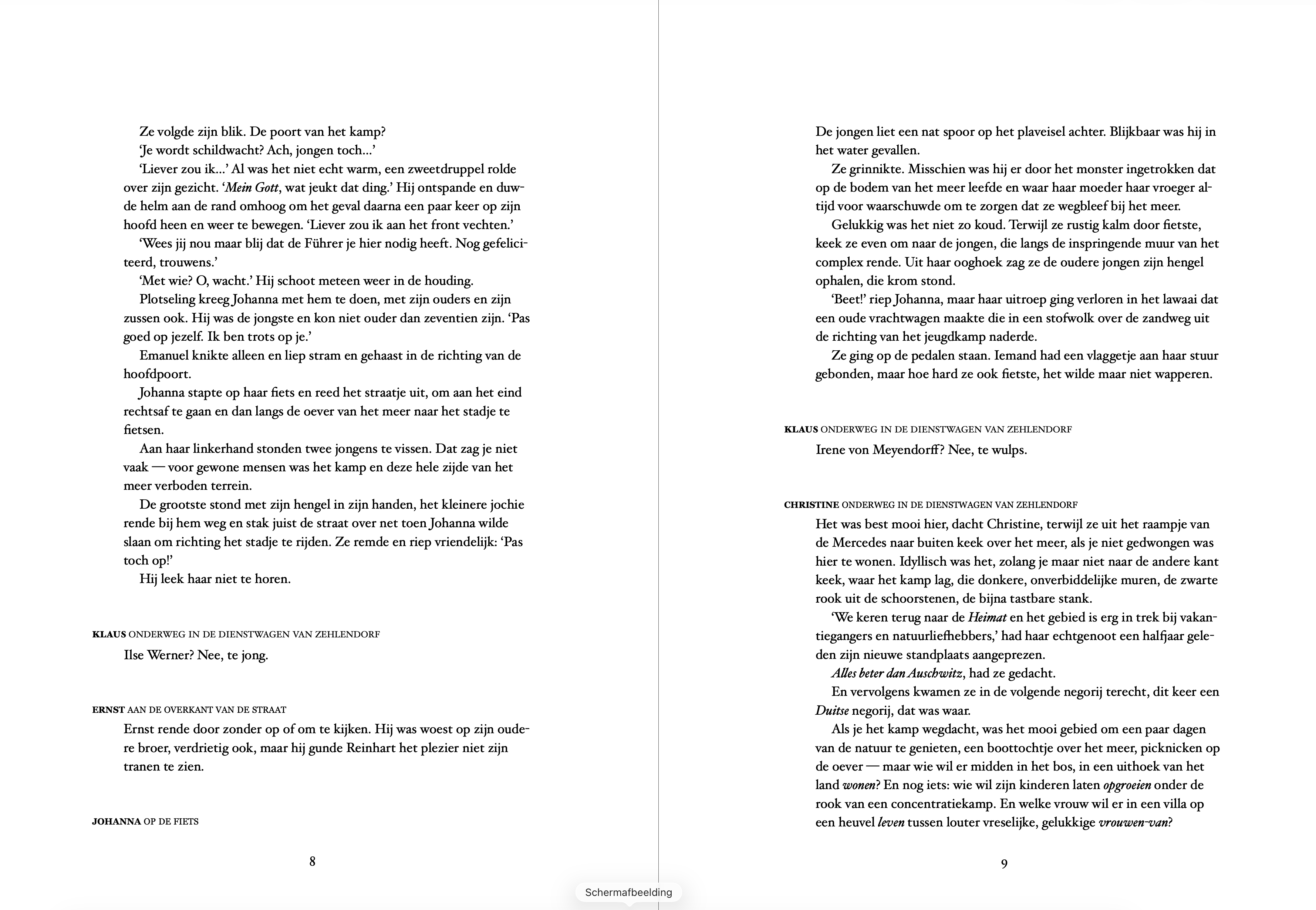 Hieronder een voorbeeld van het manuscript zoals het eruitzag in januari 2021, toen ik al een paar maanden bezig was (ik kon niet meteen een vroegere versie op mijn computer vinden). Herbert heet hier nog Klaus, later veranderde ik dat, omdat hij steeds optreedt met Karl en ik verwarring tussen die twee korte namen die beginnen met een K wilde voorkomen.