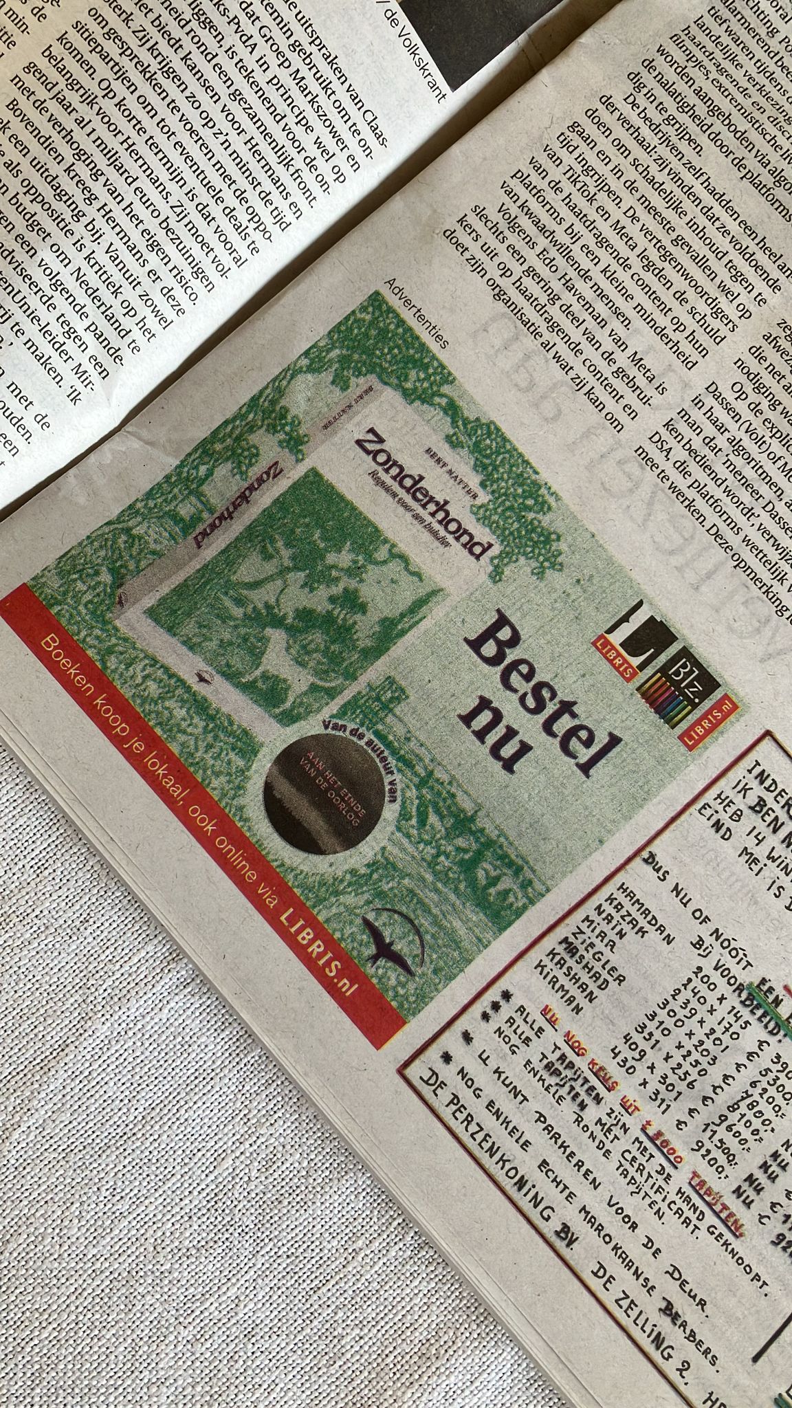 In de Volkskrant staat vandaag deze advertentie: