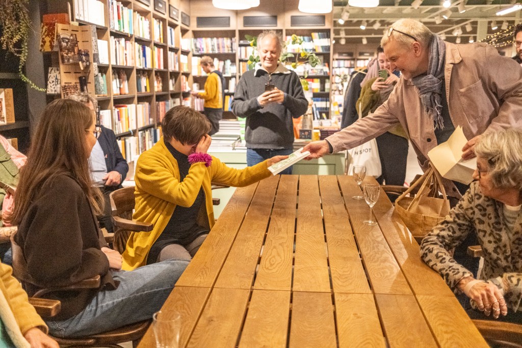 Te midden van vrienden en familie overhandigde ik dinsdag in Boekhandel Kramer & Van Doorn te Zeist het eerste exemplaar van Zonderhond aan het oorspronkelijke en enige echte baasje van onze lieve en onvergetelijke Hutsh: Lidewij.