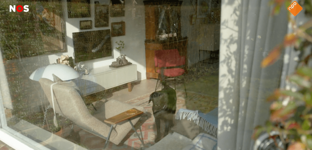 Gisteren stond Nieuwsuur (filmpje) voor de deur en onze hond Osca schrok nogal van de cameraman, die er in haar ogen moet hebben uitgezien als een vreeswekkend beest op twee poten met een enorme kop, terwijl hij heel aardig was, net als Annephine van Uchelen, die in de voetstappen van Tonko Dop treedt (die in 2016 al eens stilletjes mijn huisje voorbij reed) en de vragen stelde.