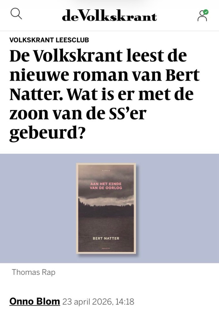 Onder leiding van Onno Blom gaat de Volkskrant Leesclub in mei mijn roman Aan het einde van de oorlog lezen. Erg fijn nieuws.